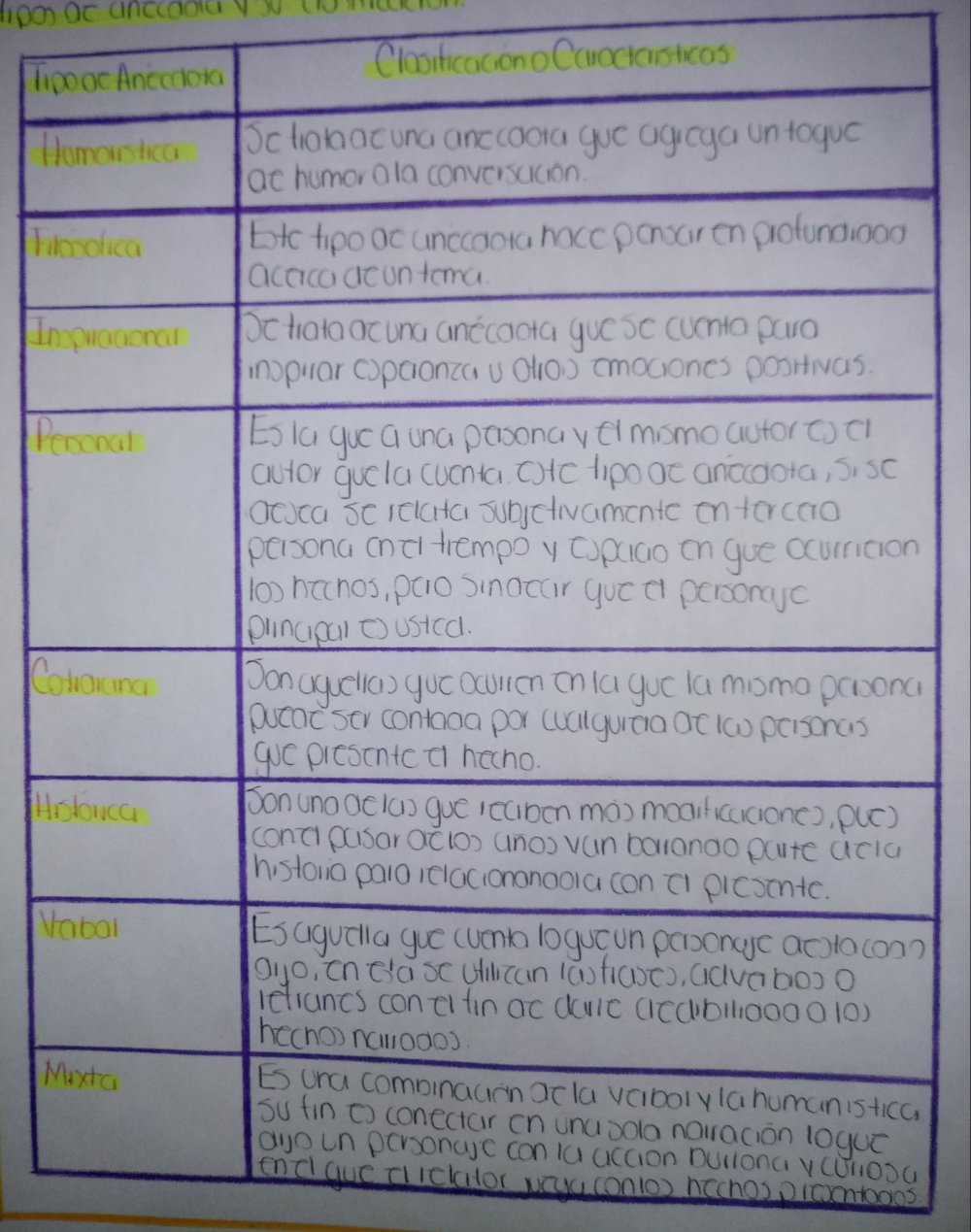 °Elabora un cuadro comparativo con los diferentes tipos de anécdota y su clasificación.